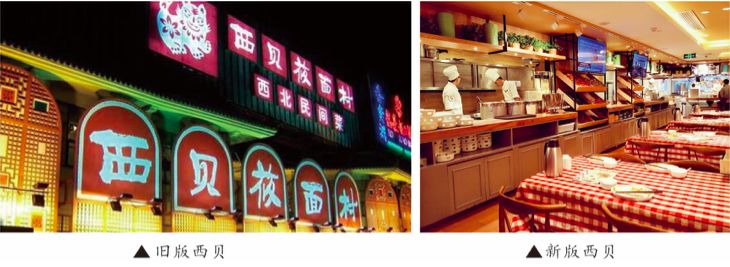 比如西贝莜面村在刚打开北京市场的那几年,店面都是社区店或者临街店,面积大,菜品种类多,顾客群体偏向于上了岁数的社区居民。自从他们开始主攻商场店后,店面面积缩小了,客单价提升,装修风格温馨简约化了(摒弃了之前社区店的陕北风情),如图2-2所示。这时候由于就餐场景发生了很大变化,所以顾客群体中的年轻人逐渐增多。